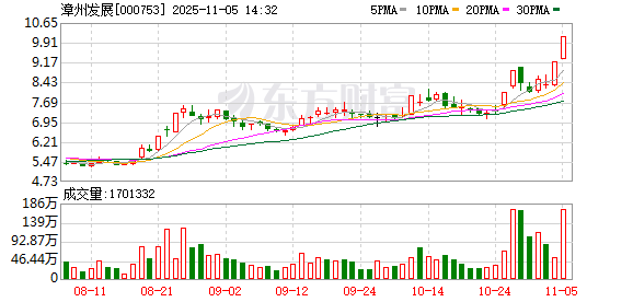 数据宝统计,截至13:55,漳州发展成交额16.08亿元,创2024年12月5日以来新高。最新股价上涨10.00%,换手率16.64%。上一交易日该股全天成交额为4.72亿元。