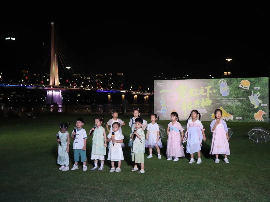 随后,11位来自横沥镇的萌娃献上《落雨大》等粤语童谣串烧,稚嫩童声瞬间唤醒无忧童年记忆,为夏夜增添一份纯净温馨。