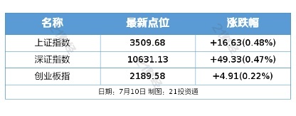 7月10日,A股三大指数集体上涨,截至收盘,沪指涨0.48%,深成指涨0.47%,创业板指涨0.22%,北证50指数跌0.16%。全市场成交额15150亿元,较上日缩量124亿元。全市场超2900只个股上涨。板块题材上,硅能源、房地产、稀土永磁、多元金融、减肥药概念股涨幅居前。PCB、游戏、存储芯片、跨境支付板块跌幅居前。