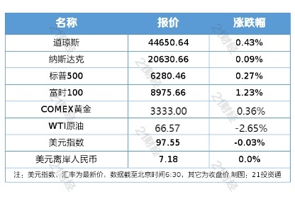 纽约股市三大股指7月10日上涨。截至当天收盘,道琼斯工业平均指数比前一交易日上涨192.34点,收于44650.64点,涨幅为0.43%;标准普尔500种股票指数上涨17.20点,收于6280.46点,涨幅为0.27%;纳斯达克综合指数上涨19.33点,收于20630.67点,涨幅为0.09%。